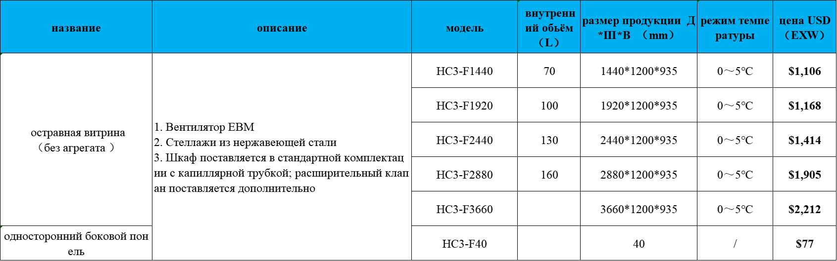 Fтип одноуровная витрина для мяса