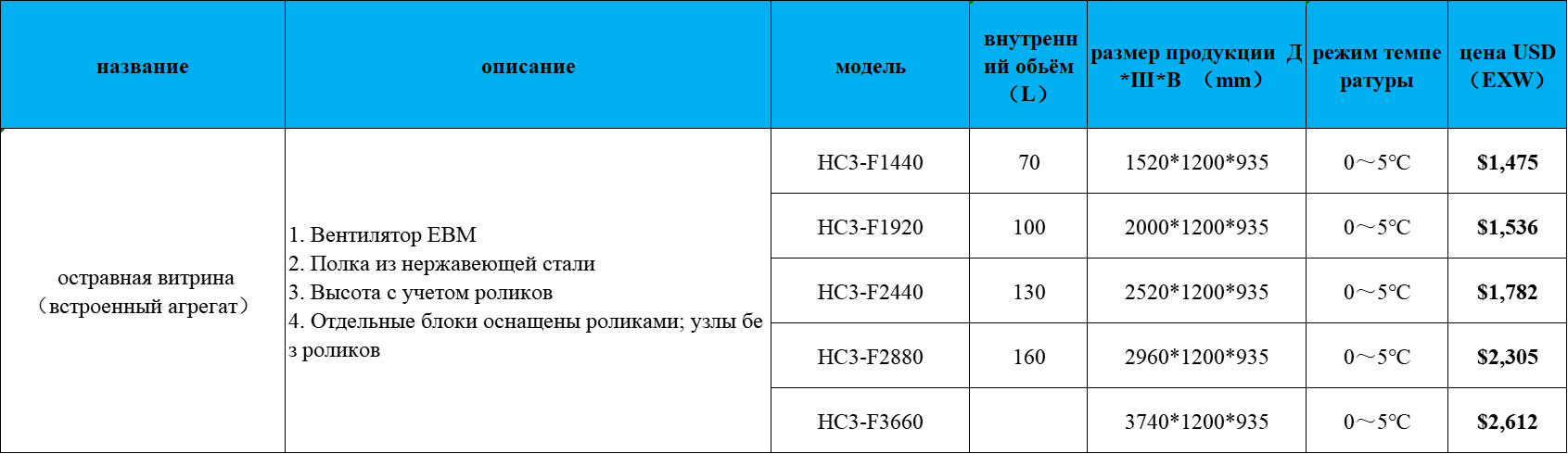 Fтип одноуровная витрина для мяса
