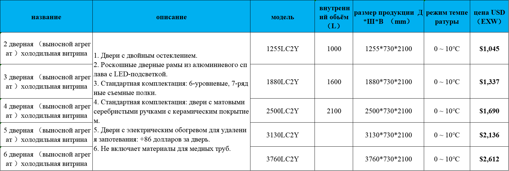 модель MEIYIJIA (выносной агрегат )холодильная витрина